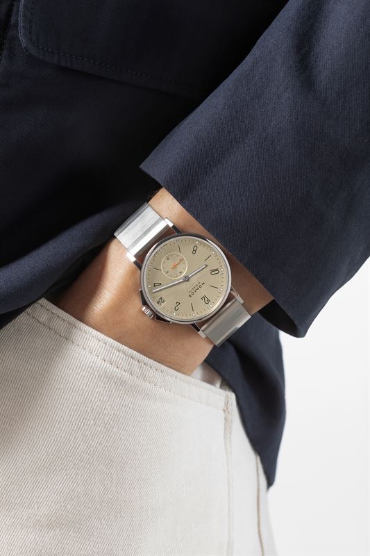 Wie das? Für die neuen Idealmaße wurde der Datumsring des schlanken Uhrwerks manipuliert, behutsam in der Glashütter Manufaktur ein Stückchen enger geschneidert. Ergebnis: eine für beinahe alle Handgelenke ideale neue Uhr. So gibt es das bekannte NOMOS-Modell Ahoi also erstmals auch in der wichtigen und klassischen Größe von exakt 38,5 Millimetern.
